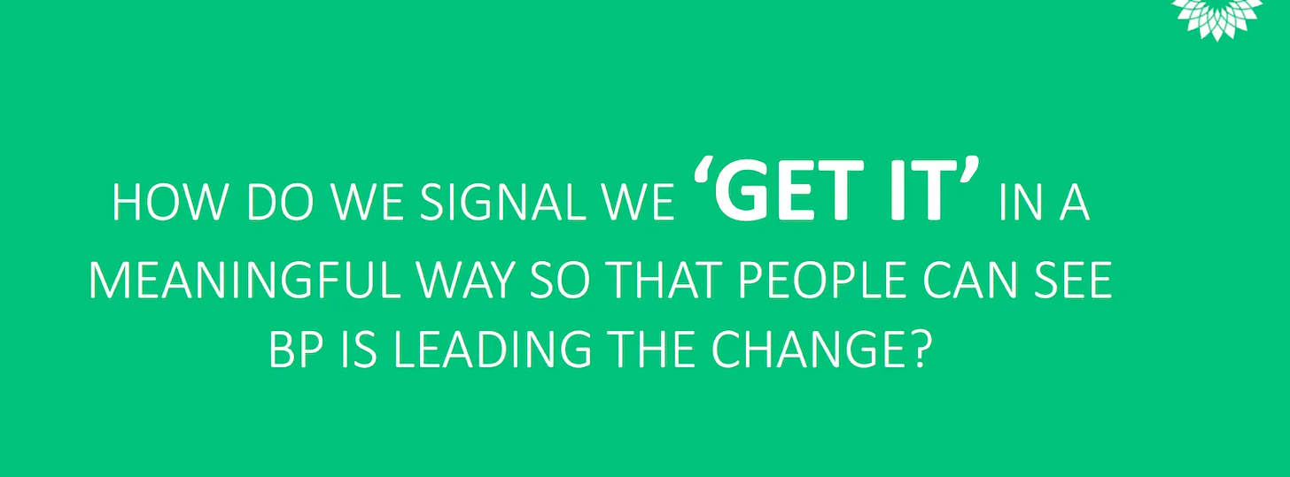 4. A key part of BP’s strategy is to convince the public that oil companies are the ones best equipped to manage the energy transition. The American Petroleum Institute went with “we’re on it,” Chevron’s staff are “problem solvers,”, ExxonMobil is “powering progress.” Now BP wants you to know that it “gets it.” Because if they can convince us that they’re solving the problem, who needs regulation, activism, competing clean energy companies — really any external pressure at all?