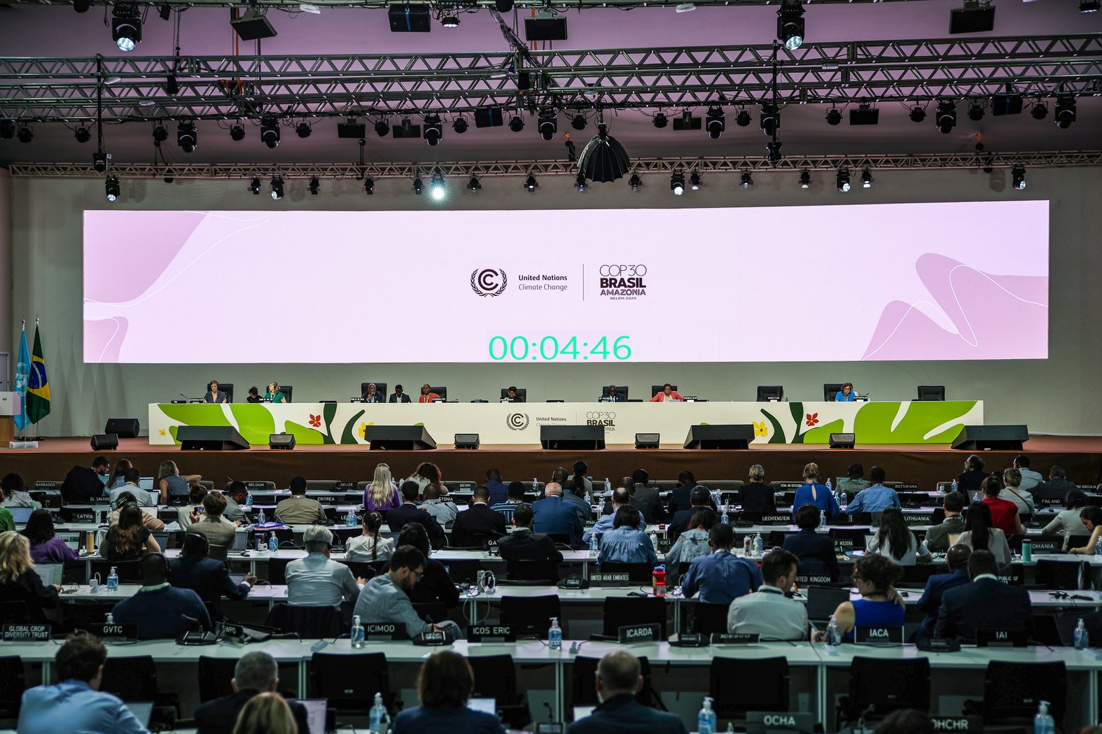 Photo: View of the dais during the plenary on November 11, 2025. Credit: IISD/ENB, Mike Muzurakis.