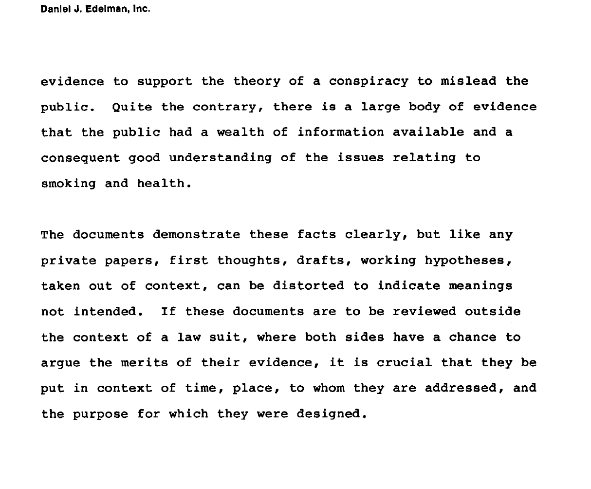 There’s a lot of documentation on the scientists who helped tobacco firms manufacture uncertainty about the health harms of their products. As historians Naomi Oreskes and Erik M. Conway recount in their book Merchants of Doubt, some of these same scientists went on to do similar work for Big Oil, to spin the public on the link between burning fossil fuels and climate change. t But not much has been written about the publicists who helped to craft this strategy, among them Daniel Edelman. A key part of his 1977 proposal to R.J. Reynolds was the idea of creating room for doubt in the cigarettes-and-health debate. “In our judgement, if we can convince the public that there is a real possibility that additional research can produce entirely new insights on health and smoking,” he wrote, “we can improve the industry’s own credibility.”