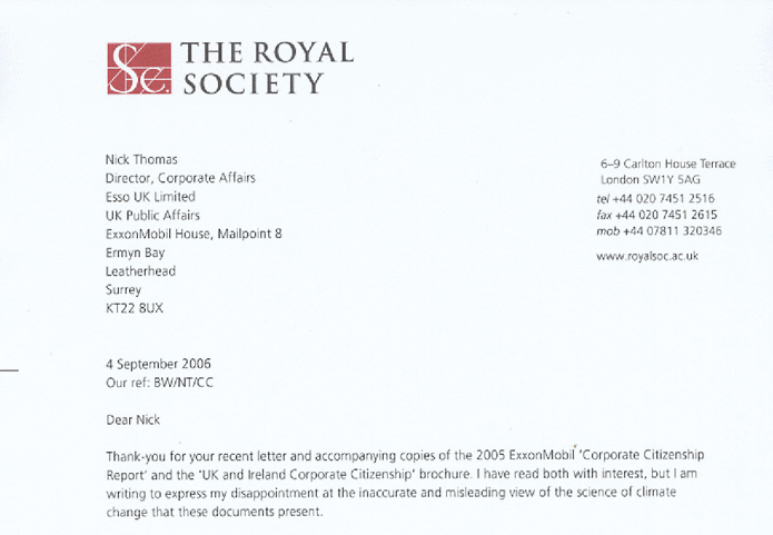 Senators then sent Exxon a letter demanding that they cease paying for the “effective climate change denial myth” and Britain’s Royal Society called on Exxon to stop financing American groups that “misinformed the public about climate change.”
