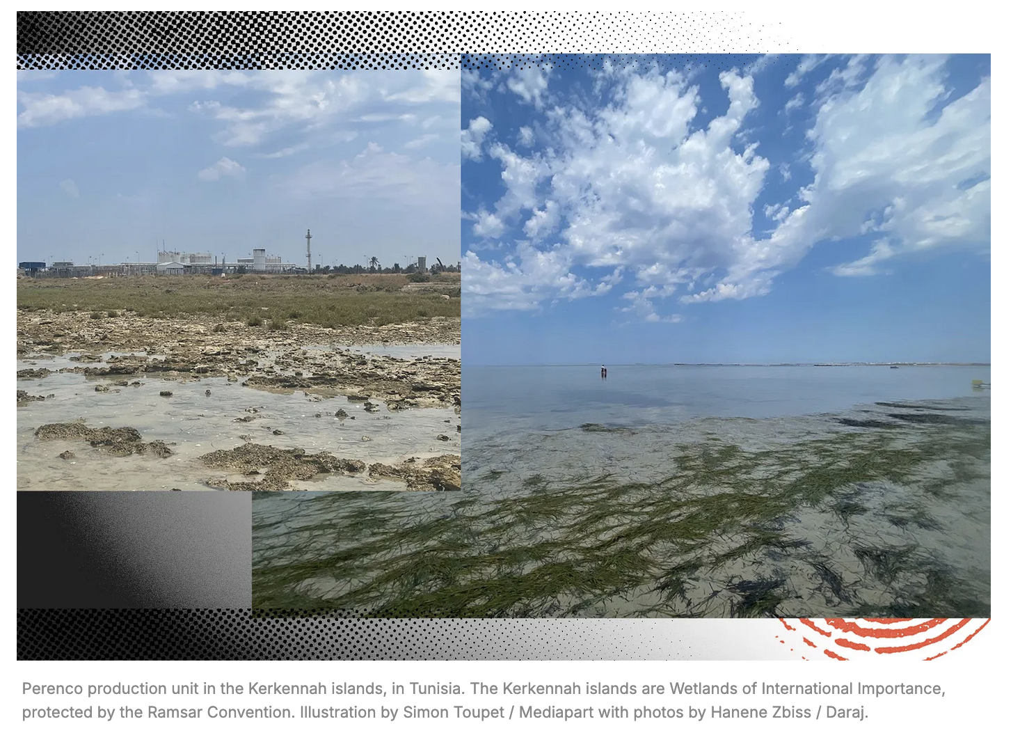 Cover photo:Salt marshes of Salicornia plants, a petrochemical plant and a natural gas refinery in the Ashtum El Gamil protected area on Lake Manzala in Port Said, Egypt. Illustration by Simon Toupet / Mediapart with photo by Mohammed Awad, Daraj / Ozone.