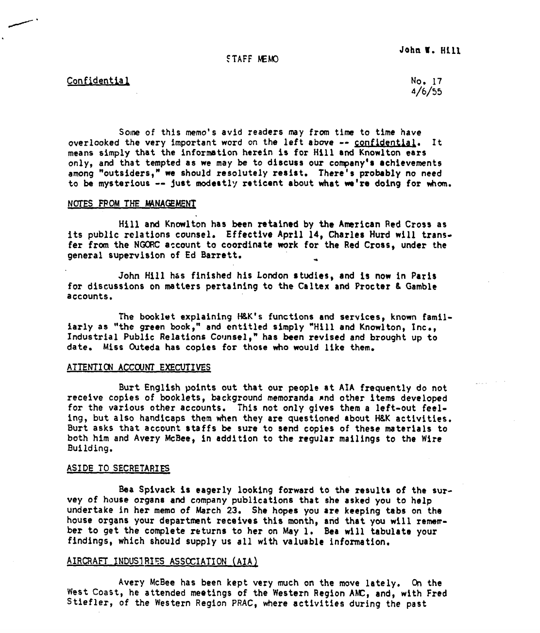 By 1947, John Hill and Don Knowlton had mostly parted ways, although the firm kept the same name. Hill gave Knowlton the Ohio clients and kept the rest for himself. Over the course of his life, he turned Hill and Knowlton into the largest PR firm in the world. Although he retired in 1962, he remained very involved in the firm, going to the office daily right up to a month before he died, at the age of 86, in 1977. Hill had stayed true to his commitment to stay out of the press himself, and none of his industrial machinations were well known at the time of his death.