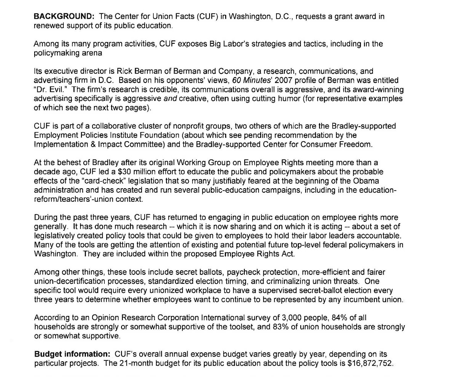 Berman's forte is astroturfing. He runs a wide range of front groups, including the Center for Consumer Freedom, the Center for Union Facts, Employment Policies Institute Foundation, Center for Organizational Research and Education, and campaigns like Big Green Radicals (against environmental organizations) and Teachers Unions Exposed.