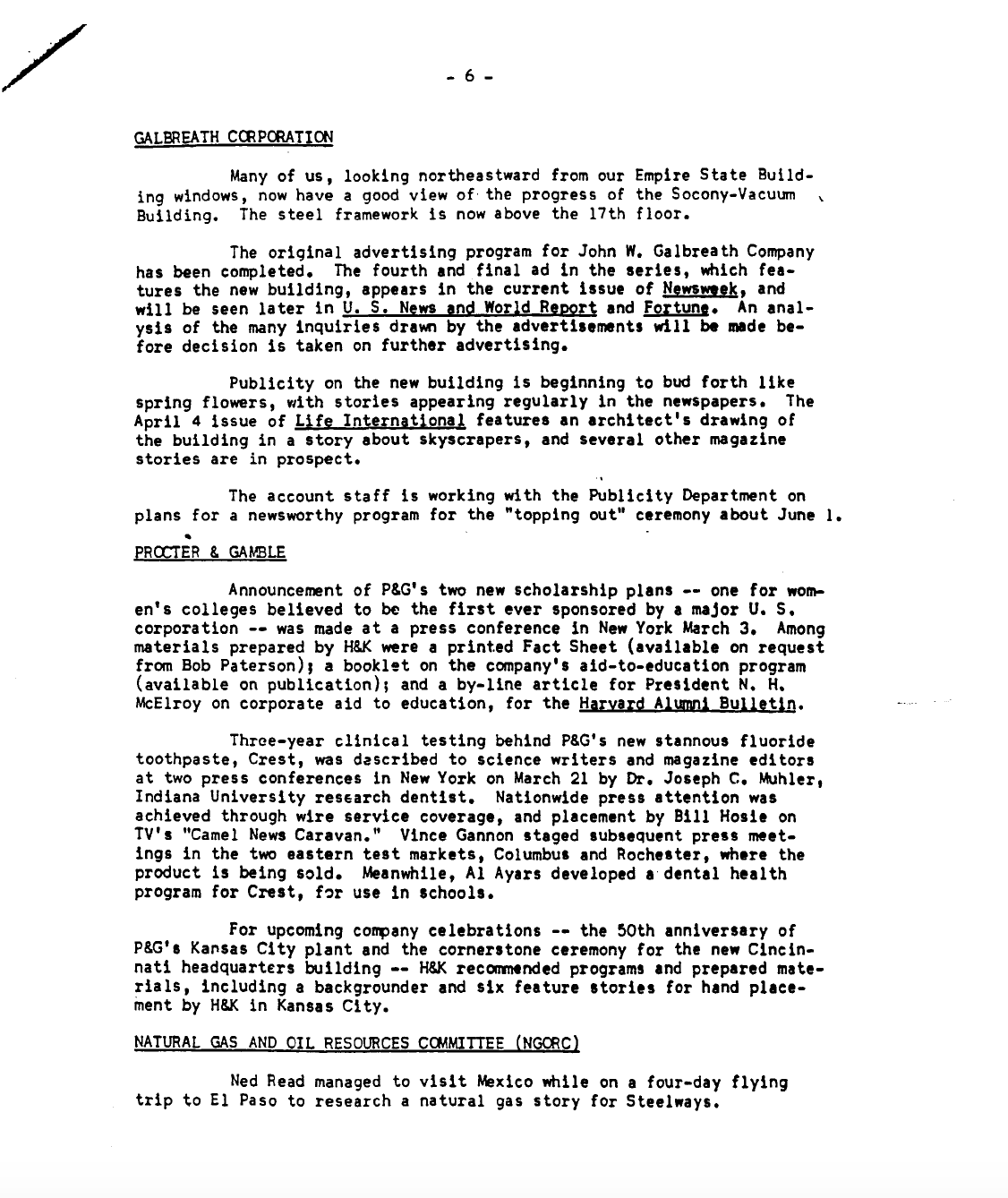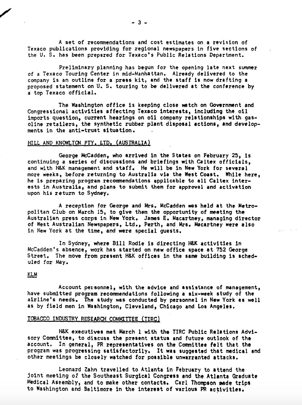 There are all these staff memos from this time where they’re giving updates on clients and the oil-tobacco connection is stark, because you’ve got updates on Texaco followed immediately by updates on the phony research committee, with lots of the same staff on both (see above).