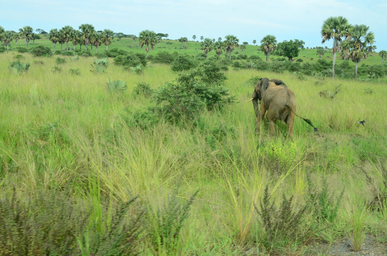 An elephant wanders through the vast savannah of Murchison Falls National Park. Photo by Diana Taremwa Karakire.