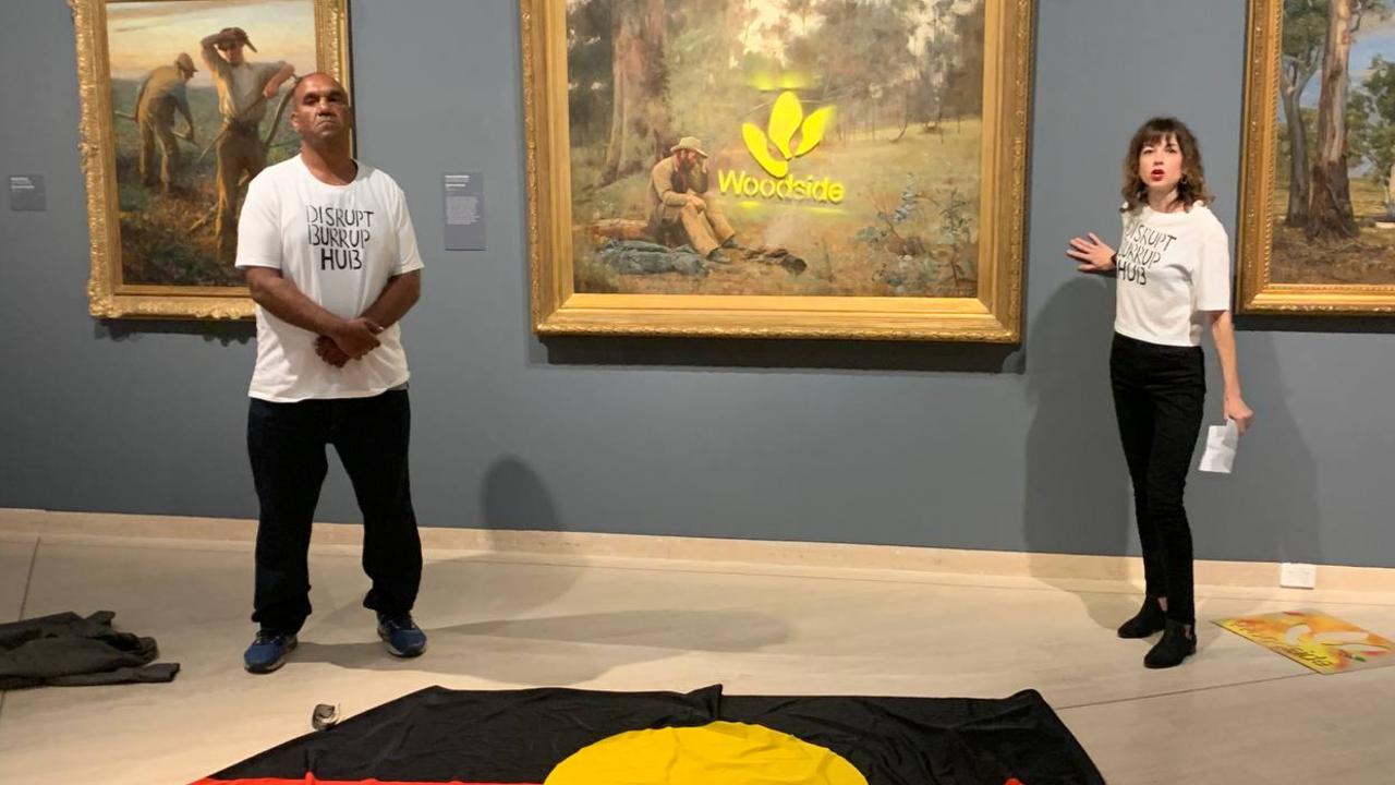 At the Art Gallery of West Australia earlier this year, activists protesting the massive Burrup Hub gas project spray painted the logo of Woodside, the company responsible for that project, on a painting.
